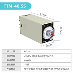 凯昆(KACON)可调TTM时间继电器交流220V通电延时直流24V控制开关 TTM-40.5S 24VDC 0.5秒内
