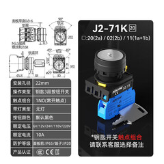 凯昆凯昆KACON Φ22自锁自复位平头型/凸头形/全保护罩型急停按钮开关 J2-71K20(钥匙开关/3档)